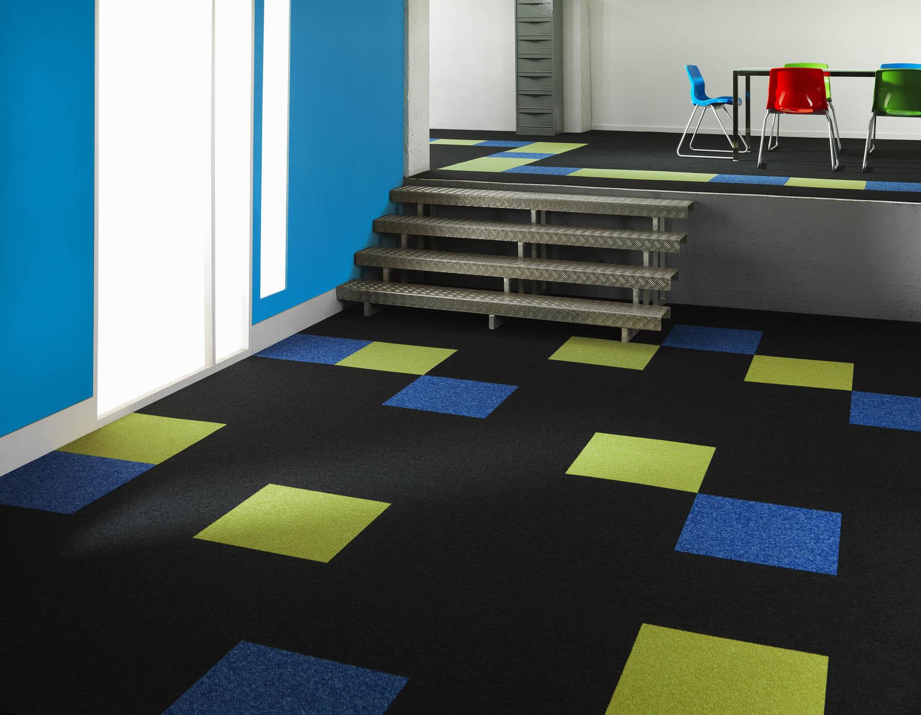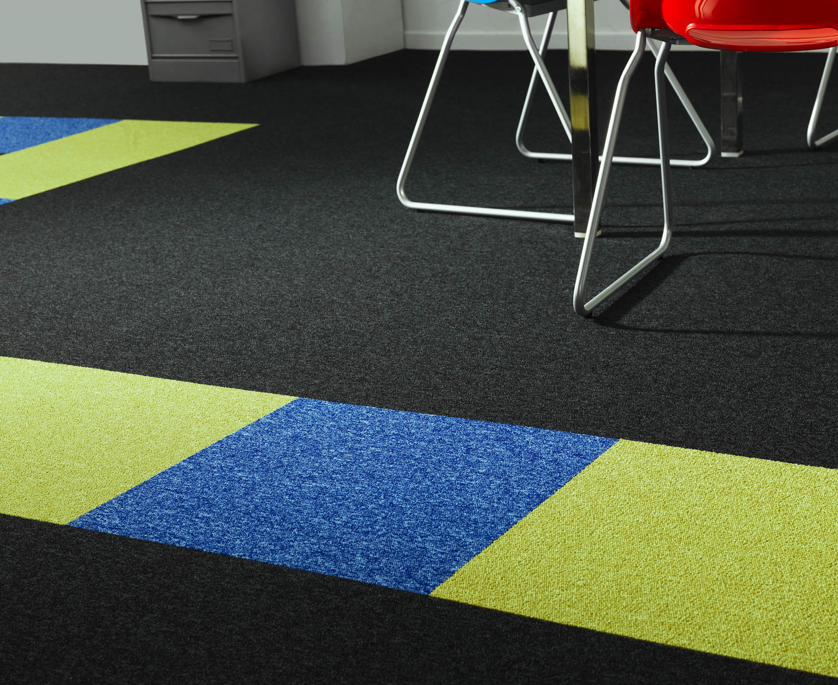 Deze sterke tapijttegel kwaliteit is een goede basis voor elk interieur waar hard gewerkt wordt en is geproduceerd met 100% PA garen geverfd pool materiaal.